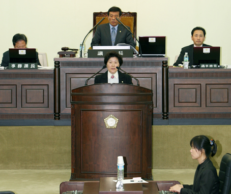 지난 2일 열린 제184회 중구의회 임시회 제2차 본회의에서 송의 의원(부의장)이 결의문 채택에 앞서 제안내용을 설명하고 있다.