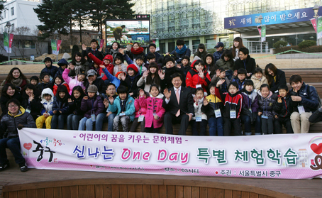 이번 체험교실은 지난해 9월부터 올해 1월까지 7개동(장충동, 신당1,2,3,4,5동, 황학동) 자치회관 학습지원 공부방에서 동국대학교 자원봉사 대학생들과 주2회 2시간씩 영어, 수학, 한자 등을 학습하던 어린이들을 위해 마련된 것이다.