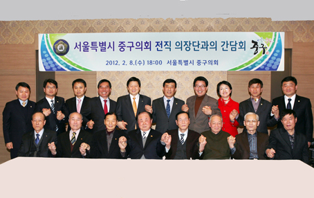 중구의회(의장 김수안)는 지난 8일 중구의회의 든든한 발판이 되어 온 전직 의장들과의 간담회를 가졌다. 이번 간담회는 그간 왕성한 의정활동으로 중구발전에 밑그림을 그려온 전직 의장들의 경험을 토대로 보다 활발한 의정활동을 이루고자 추진됐다.