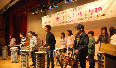 이날 80여명이 참석한 가운데 지난 1년 동안의 활동을 정리하는 영상을 시작으로 참여 청소년의 소감을 들으며 한해를 돌아보는 시간을 가졌다. 장애·비장애 청소년들의 남녀 그룹댄스와 난타 공연과 피아노 독주로 감동의 무대를 이어 나갔다. 이날은 장충고등학교 중창단 JCC의 찬조 공연도 어우러져 꿈 드림 수료식과 발표회의 뜻을 더했다.