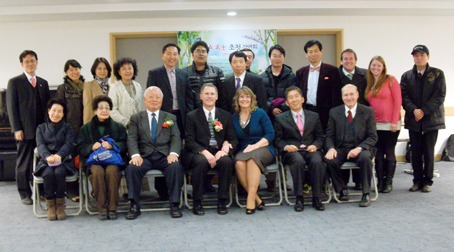 지난 15일 예수그리스도 후기성도교회 신당와드 문화관에서 열린 제72차 '명사초청영어강연회가 끝난 뒤 굿맨 대표이사와 참석자들이 기념촬영을 하고 있다.