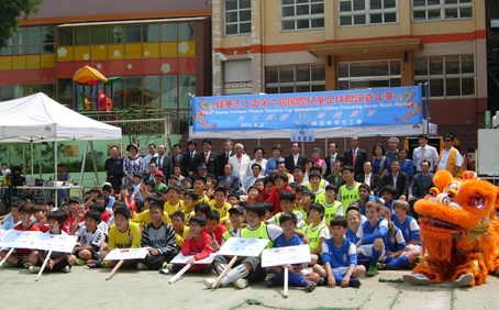 지난 9일 명동에 있는 한성화교소학교에서 열린 제6회 한화지공배 국제어린이 친선축구대회에 앞서 선수들과 내빈들이 기념촬영을 하고 있다.