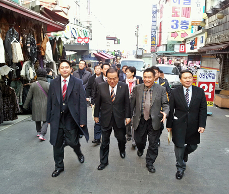 정호준 국회의원(중구/민주통합당)은 지난 5일 문희상 비상대책위원장(이하 비대위원장)을 비롯한 민주당 비상대책위원과 주요간부들이 함께 중구 남대문시장을 방문해 김재용 대표이사, 상인들과 현장간담회를 갖고 현안문제 등을 논의했다.
