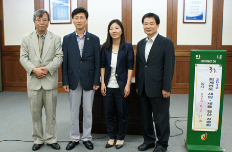 지난 7일 중구청 기획상황실에서 열린 2012년도 회계연도 결산검사 강평에서 황용헌 책임위원과 윤석철 최원익 노미하 위원이 기념촬영을 하고 있다.