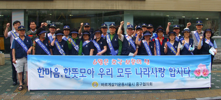 바르게살기운동 중구협의회(회장 조걸)는 호국보훈의 달을 맞아 지난 19일 6호선 신당역 7번 출구에서 기초질서지키기 합동캠페인을 실시했다.