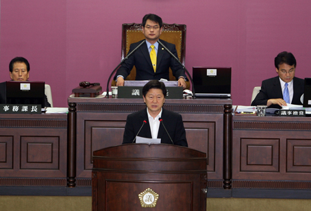 지난 4일 열린 제207회 정례회 제3차 본회의에서 최창식 구청장이 의원들의 질문에 답변하고 있다.