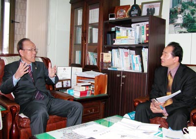 ◇중구의회 손덕수 의장이 이형연 본지발행인과 인터뷰를 하고 있다.