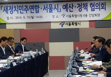 이날 협의회에는 박원순 시장과 더불어 새정치민주연합 신기남, 오영식, 이춘석, 장병완, 우원식, 서영교 의원 등이 참석한 가운데 △지하철 1∼4호선 내진설계 예산 △지하철 노후시설 재투자 비용 △아동 보육·양육시설 지원 비용 등 주요 사업 10개에 대한 예산을 협의했다.