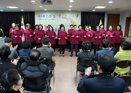 지난 4일 필동 주민인사회에서 노래교실 수강생들이 '인생'을 열창하고 있다.