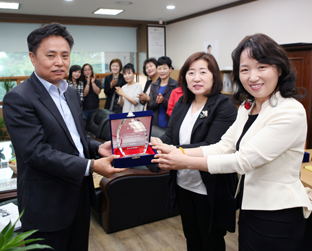 이날 연합회 홍순옥 회장과 회원들이 중구의회를 방문, 이경일 의장과 김기래 부의장, 이화묵 의원이 참석한 가운데 김기래 의원에게 어린이집 보육환경 개선과 교육문제에 관심과 지원을 펼친데 대해 감사패를 전달하고 감사함을 전했다.