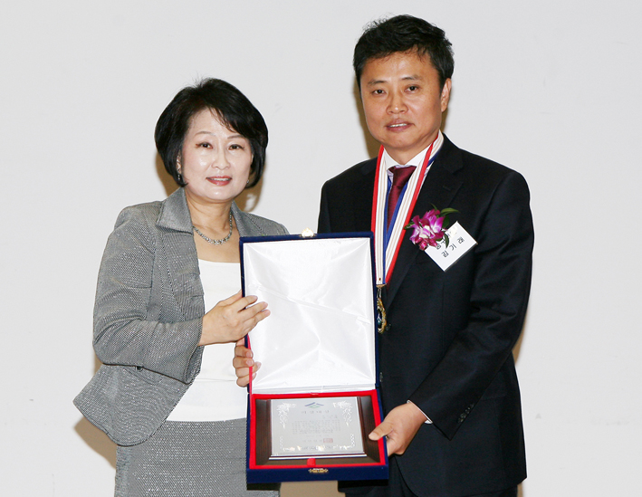 지난 13일 중구의회 김기래 의원(우)이 의정대상을 수상한 후 시민일보 임정희 사장(좌)과 기념촬영을 하고 있다.
