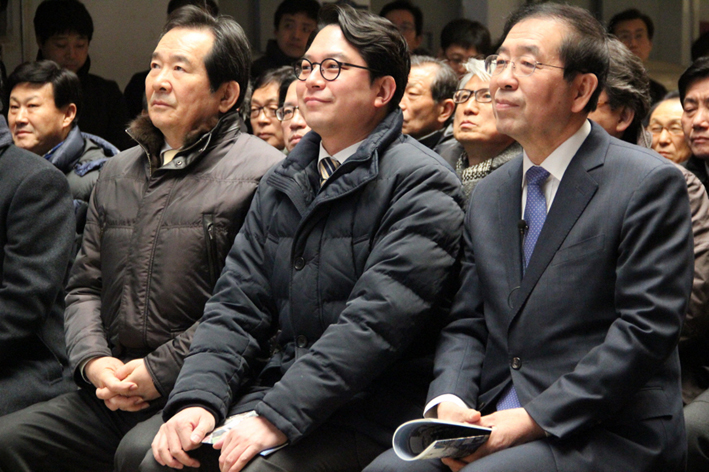 지난달 28일 정호준 의원이 세운상가 현장설명회에 참석해 박원순 시장과 자리를 함께 하고 있다.