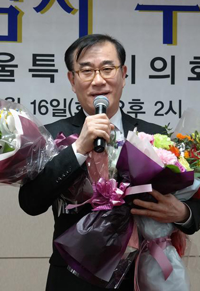 지난 2월 16일 최판술 시의원이 '우수의원상'을 수상한 뒤 소감을 밝히고 있다.