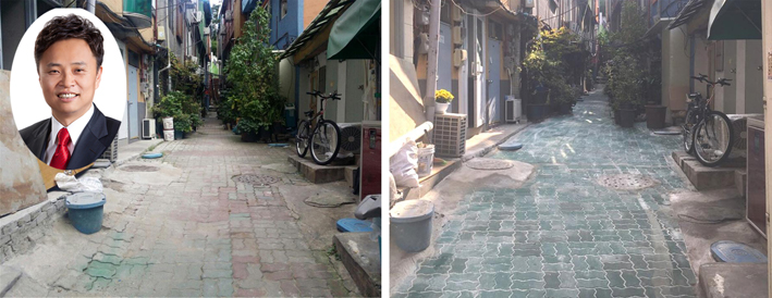 45세대가 살고 있는 이 지역은 역사가 오래된 만큼 주변 환경이 노후된 곳이 많았다. 이에 따라 환경 개선에 대한 민원 또한 많았던 곳이기도 하다. 김 의원은 보도 정비에 대한 민원을 듣고 민원인과 함께 현장에 나가 보도 상태를 직접 확인한 후 지면이 꺼져 움푹 파이고 노후 정도가 심한 보도를 정비해야 할 필요성을 절감하고 구청 담당 부서에 보도를 정비해 줄 것을 요청했다.