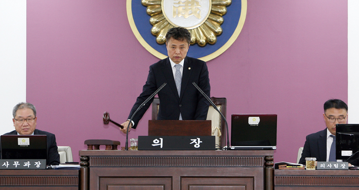 지난 8일 중구의회 제2차 본회의에서 김기래 의장이 안건을 통과시키고 있다.