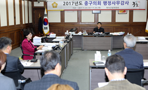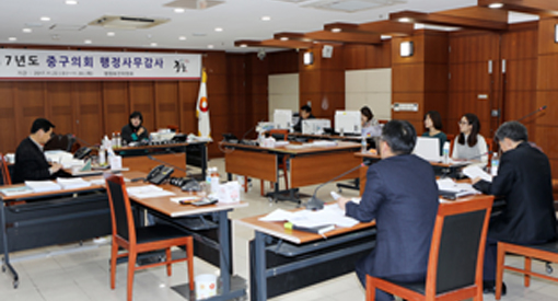 중구의회 행정보건위원회(위원장 양은미)는 지난달 22일 중구청 지하합동상황실에서 공보실, 감사담당관, 행정관리국(총무과, 자치행정과)을 시작으로 소관부서에 대한 2017년도 행감을 실시했다.
