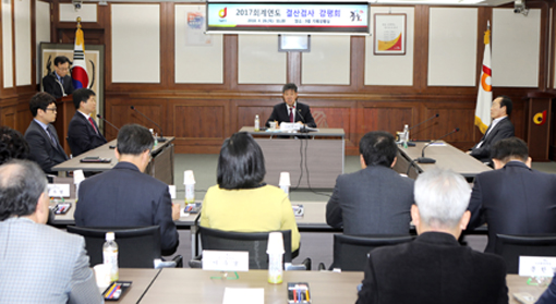2017 회계연도 결산검사에서 고문식 책임검사위원이 강평을 하고 있다.