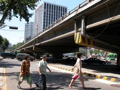 박의원은 "더욱이 왕복 8차선이 넘는 광희 4거리의 원활한 좌우회전을 불가능하게 하고 부분회전만 가능하게 함으로써 주변도로의 교통흐름마저 오히려 방해하고 있다"고 주장하면서 "동대문패션타운 관광특구, 동대문운동장공원화, 복원후의 청계천 등 주변환경과 부조화되고 미관을 해쳐 '관광한국'의 이미지를 실추시키고 있다"고 강조했다.