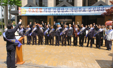 수도분할이전의 막중한 천도계획을 직접 이해 당사자인 2천300만 수도권 주민의 동의와 국민의 공감대 없이 추진시키는 것은 도저히 용납될 수 없은 행위이며, 수도분할 이전은 역사적인 국가의 중대사인 만큼 국민의 합의가 전제되어야 하므로 국민투표를 반드시 실시해야 한다.
