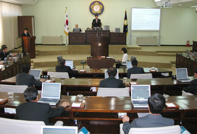 ◇지난 5일 중구의회 본회의장에서 열린 제125회 임시회에서 오세홍 의장이 개회사를 하고 있다.