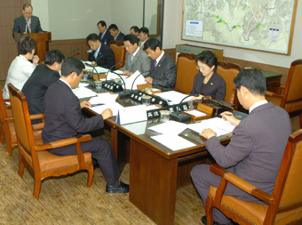 ◇지난 5일 의회운영위원회 고문식 위원장을 비롯한 위원들이 의회 사무국으로 부터 운영현황을 보고받고 있다.
