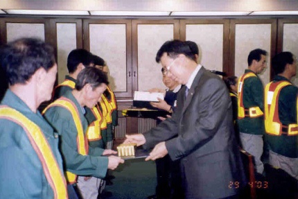 중구는 근로자의 날을 맞아 관내 모범 환경미화원 13명에게 표창장과 격려품을 수여하는 시상식을 지난달 30일 기획상황실에서 가졌다.