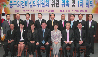 심의위원장에는 김영한, 부위원장은 오세홍 전의장이 호선을 통해 만장일치로 선출했으며, 위원에는 노수석 서울신문 편집국 부장, 김기원 관동대 교수, 이기팔 법무사, 조걸 중구주민자치위원장협의회장, 정영숙 중구약사회 감사, 이형연 중구자치신문사 발행인, 권도연 성신여대 겸임교수, 정태용 자유연합청년대표등이 위촉됐다.