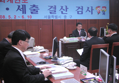 지난 2일, 중구청 지하 합동상황실에서 열린 2007회계년도 세입세출결산 총괄보고회를 시작으로 이달 31일까지 각 국별로 결산검사가 실시된다. 이날 보고회에는 각 국과장등 25명이 참석했다.