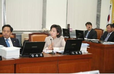 ◇나경원 국회의원이 대한체육회 국정감사에서 고교 운동선수들에 대한 대책 마련을 촉구하고 있다.
