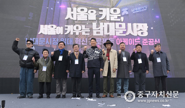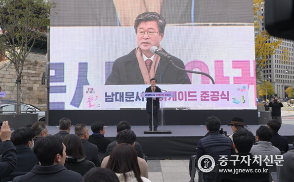 서울 중구(구청장 김길성)가 지난 17일 남대문시장 아케이드 준공식을 열고 상인과 주민 150여 명과 함께 완공을 축하했다.