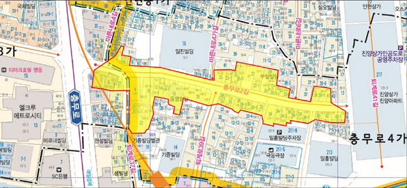 서울 중구가 충무로 골목형상점가(회장 박동춘) 점포들을 구 도시브랜드 '이순신1545'를 활용한 LED브랜드판과 입간판으로 단장했다. 낡고 제각각이던 골목에 통일된 디자인을 입혀 상권의 이미지를 크게 바꿨다.