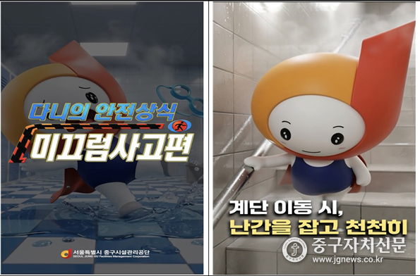 서울시 중구시설관리공단은 AI 영상 제작 도구를 활용해 공단 공식캐릭터 ‘다니’가 등장하는 미끄럼사고 예방 숏폼 애니메이션을 제작·배포했다.