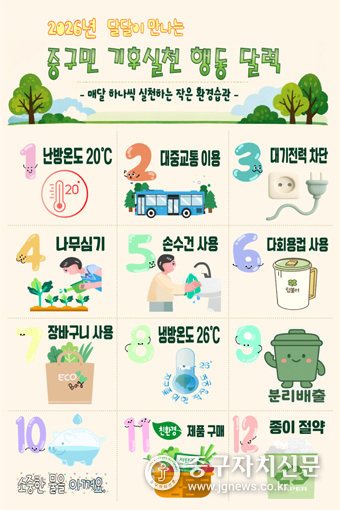 김길성 중구청장은 “1월 미션을 시작으로 매달 이어지는 기후실천 행동이 주민들의 일상 습관으로 자리잡길 바란다”며 “작은 실천이 모여 큰 변화를 만드는 만큼, 앞으로도 주민과 함께하는 생활 속 탄소중립 정책을 꾸준히 이어가겠다”고 말했다.