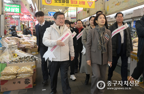 한편, 이번 설 연휴 전통시장 방문에는 최수진 국회의원과 중구 시·구의원들도 동행해 상인들의 의견에 귀 기울였다.