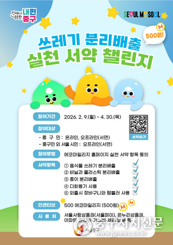 김길성 중구청장은 “생활폐기물 감량을 위해서는 주민들의 자발적인 참여가 무엇보다 중요하다”며 “앞으로도 주민들과 함께 생활 속 분리배출 실천을 확산해 지속가능한 자원순환 도시를 만들어가겠다”고 말했다.