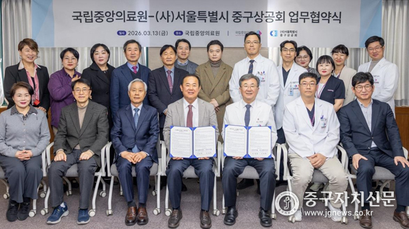 국립중앙의료원(원장 서길준)과 (사)서울특별시 중구상공회(이하 중구상공회, 회장 이창환)가 지난 3월 13일 국립중앙의료원 연구동 대회의실에서 지역사회 건강증진과 공공의료 환경 발전을 위한 업무협약을 체결했다.