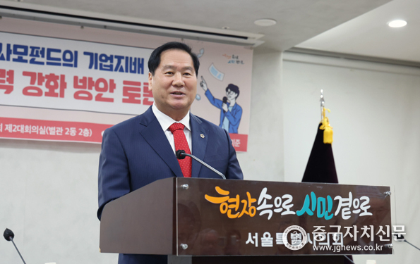 박영한 의원은 개회사에서 “국민연금과 기관투자자의 영향력 확대는 단순한 시장 변화가 아니라 기업 지배구조 전반을 재편하는 흐름”이라며 “서울시가 글로벌 금융 중심지로 도약하기 위해서는 이에 대한 전략적 대응이 필요하다”고 강조했다.