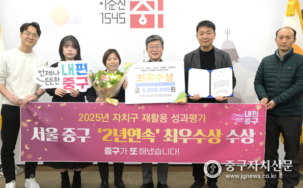 서울 중구(구청장 김길성)는 서울시가 실시한 ‘2025년 자치구 재활용 성과평가’에서 지난해에 이어 2년 연속 최우수상을 수상했다.