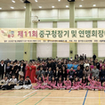 중구댄스스포츠연맹(회장 김태영)는 지난 11월 29일 충무스포츠센터 2층 대체육관에서 열린 '제11회 중구청장기 및 연맹회장배 댄스스포츠 대회를 개최했다. 이날 대회에는 230여명의 동호인들이 참여한 가운데 중구청장기 부문 단체전 대상에 라틴홀릭(충무라틴클럽), 최우수상에 에델바이스, 우수상에 중림꽃청춘(중림웰빙), 무한도전(명동클럽) 등 2팀이 각각 차지했다. 일반부 단체전 대상에는 3H팀, 최우수상에 실피드, 러블리 등 2개팀, 우수상에 솔리움, 난다긴다, 댄스아트라인, 영플라워 등 4개팀이 수상했다. 실용댄스부문 단체전 대상에는 OK라인댄스, 최우수상에 중림 라인댄스, 핑스톤, Famous, Shiny girls 등 4개팀이 수상했다. 이날 생활체육 활성화와 지역발전에 기여한 공로로 중림웰빙클럽 오전석 회장이 중구청장 표창을, 중림웰빙클럽 이옥자 총무가 국회의원 표창을, 라틴홀릭클럽 김은숙 총무가 중구의회 의장 표창장을 각각 받았다. 그리고 에델바이스크럷 유경조 회원이 중구체육회장 표창을, 충무클럽 김종술 회원이 중구댄스포스츠연맹 회장 표창장을 각각 받았다. 이 대회에는 중구와 중구체육회가 후원한 가운데 윤판오 중구의회 의장과 유승철 중구체육회장과 부회