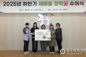 서울 중구(구청장 김길성)는 새마을운동 중구지회(지회장 김명곤)와 함께 지난 11월 4일 중구청 중구홀에서 새마을지도자 자녀들에게 장학금을 수여했다. 이번 수여식에서는 58명의 중·고·대학생 자녀에게 총 3천만원의 장학금이 전달됐다. 새마을운동 중구지회는 지역 발전을 위해 앞장서는 새마을지도자들의 자녀들에게 매년 장학금을 수여하며 성실한 학업과 봉사의 가치를 이어가도록 장려하고 있다. 이날 행사에서는 장학생들의 꿈을 응원하기 위한 선물도 전달됐다. 중구자원봉사센터의 공예 봉사단이 양말목으로 제작한 새마을로고 모양의 ‘꿈키링’ 70점을 마련했다. 초록색과 노란색 양말목으로 만들어진 꿈키링은 학생들뿐만 아니라 새마을지도자들에게도 인기 만점이었다. 한편, 새마을 운동 중구지회는 다양한 봉사 활동을 통해 지역 사회에 온정을 나누고 있다. 지난 1일 열린 ‘중구 남산동행 걷기 대회’에서 먹거리 부스와 바자회를 운영해 얻은 수익금을, 오는 12월 진행될 ‘취약계층을 위한 김장 만들기 행사’에 김장 재료비로 사용할 예정이다. 김길성 중구청장은 “장학금을 통해 학생들이 부모님의 지역사회 기여에 대한 자부심을 느끼고, 꿈을 키울 수 있기를 바란다”며 새마을 지도자들의 활동에