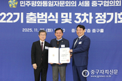 민주평화통일자문회의 서울중구협의회(회장 이웅현)는 지난 11월 25일 중구청 7층 강당에서 제22기 출범식과 함께 정기회의를 개최했다. 이날 김길성 중구청장, 박성준 국회의원(민주당 중구성동을지역위원장), 중구의회 윤판오 의장, 자문위원, 내빈등 100여명이 참석했다. 이날 출범식에는 대행기관장인 김길성 중구청장과 이웅현 신임 회장은 새로 위촉된 89명의 자문위원들에게 각각 위촉장을 전수했다. 그리고 자문위원들을 대표해 천안드레이(기획홍보분과위원장)·고하은(청년분과위원장) 자문위원이 “국법을 준수하고 조국의 민주적 평화통일을 지향하는 민족의 염원을 받들어 맡은바 사명을 성실히 수행할 것”이라며 선서했다. 이웅현 신임회장은 취임사를 통해 “이재명 대통령께서 최근 튀르키예 에르도안 대통령과 회담에서 ‘통일은 우리의 최종 목표이자 헌법이 부여한 책무이며, 어떤 일방적 방식의 통일도 지향하지 않는다’고 말씀하셨다”며 “이 메시지는 통일이 특정 진영의 과제가 아니라 국민 모두가 함께 만들어가는 미래의 과제임을 분명히 보여준다”고 밝혔다. 그는 “제22기 자문위원들은 이러한 시대적 요구속에서 △현장중심의 통일 여론 수렴 △청년과 여성의 적극적인 참여 확대 △스포츠와 연