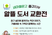 새마을문고 중구지부(회장 남준희)는 오는 10월 18일 오후 1시부터 4시까지 청구역 쉼터(청구역 3번 출구)에서 ‘알뜰도서 교환전’을 개최한다. 책을 좋아하는 사람은 누구나 참여할 수 있는 이 도서 교환전은 부스 체험(당일 현장 접수)과 소소한 행복을 나누고 바꾸는 플리마켓을 운영한다. 이 플리마켓을 운영할 셀러 3가족을 모집한다.(문의☎02-2234-8771) 도서교환전은 헌책 1권을 가져오면 새책 1권과 교환해 준다. 그리고 4가지 부스 현장을 신청하면 △케대헌 북마크 △친환경 만들기(수세미) △도서약국 그림책 읽기 △추억여행 그림책 활동을 할 수 있다. 새마을문고 중구지부는 독서문화 진흥과 지역사회 인성교육, 생활문화 확산을 목표로 활동하며, 주민이 함께 참여하는 독서캠페인, 글쓰기·낭독대회, 독후감 공모전, 작은도서관 운영 등의 사업을 진행하고 있다. 최길종 청구동 작은도서관 회장은 “작은 도서관은 단순히 책을 읽는 공간을 넘어, 주민이 함께 배우고 나누는 마을 문화의 중심”이라며 “앞으로도 다양한 프로그램과 인프라 확충을 통해 책 읽는 청구동과 중구를 만들어가겠다”고 전했다.