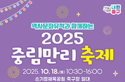 서울 중구(구청장 김길성)는 중림동 손기정체육공원 축구장 일대에서 오는 10월 18일 오전10시부터 오후 6시까지 ‘2025 중림만리 축제’가 열린다고 밝혔다. 올해 3번째로 맞는 중림동의 날(10월 둘째 주 토요일)을 기념하기 위해 중림동축제추진위원회(위원장 이성효)에서 주최하고, 학교, 복지관, 상인회, 도서관, 박물관 등 지역기관과 주민들이 참여해 흥이 가득한 소통의 장을 마련한다. 축제는 오전 10시, 중림동이 간직한 역사와 문화를 되짚는 ‘명소탐방 프로그램’으로 문을 연다. 사전 모집을 통해 구성된 초등학생 탐방단 20명이 해설사와 함께 손기정체육공원에서 출발해 서소문역사문화박물관과 중림동약현성당, 손기정기념관을 차례대로 탐방하며 흥미진진한 역사를 배우고 중림동의 새로운 매력을 발견하는 시간을 갖는다. 오전 11시 개회식과 함께 본격적으로 축제 분위기를 띄운다. 개회식에서는 모범 유공표창 수여식과 행운권 추첨이 진행된다. 이후 중림동 내 학교 학생들과 자치회관·복지관 수강생, 주민들이 준비한 13개의 공연 무대가 이어진다. △서울의료보건고 학생들의 댄스와 풍물패 △환일중 학생들의 드론쇼 △봉래초 학생들의 방송댄스 △중림복지관 수강생들의 고전무용과 밸