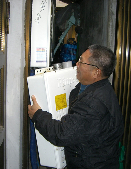 김진근 사장이 독거노인을 방문해 보일러를 교체하고 있다.