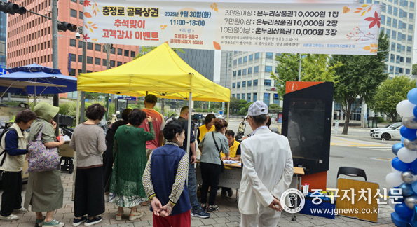 중구 중림동 충정로5·6출구 골목형상점가 상인회(회장 이애정)는 지난 9월 30일 상가 일대에서 ‘추석맞이 고객감사 이벤트’를 성황리에 개최했다.