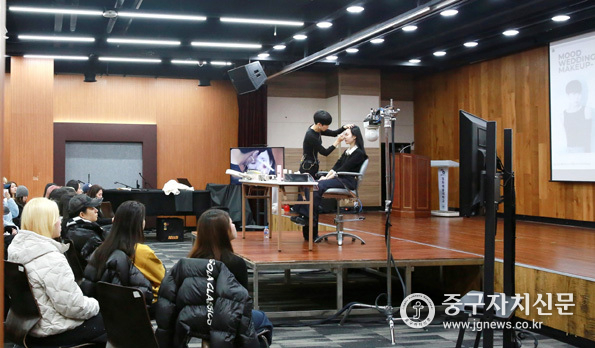 정화예술대학교(총장 한기정)는 11월 14일 명동캠퍼스 본관 대강당에서 메이크업전공 재학생을 대상으로 알루(ALLU) 박민경 원장의 특강 ‘Mood Wedding Makeup: 감각적인 무드를 담다’를 개최했다.