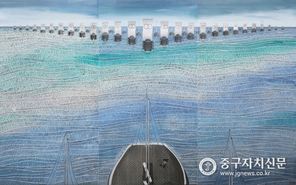 서미숙 작가는 “이순신 장군의 일대기를 준비하면서 점·선·면들이 화폭안에서 춤을 추듯 변화하는 것을 보았다. 글자를 물속에 넣으니 의지가 발생했고, 모래를 뭉치니 다짐이 생기고, 천을 오려 붙이니 가슴이 움직였다”며 “한글로 그린 이순신 장군의 일대기를 펼칠 수 있도록 지원해 주신 중구문화원과 중구청에 감사드린다”고 밝혔다.