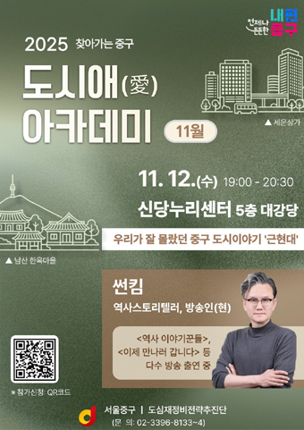 이번 아카데미 참여를 원하는 주민은 중구청 홈페이지(QR코드)나 서울시 공공서비스 예약사이트(www.yeyak.seoul.go.kr)를 통해 신청하면 되며, 선착순이다.