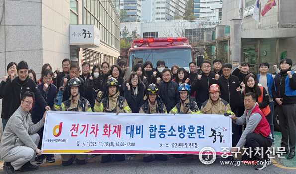 서울특별시 중구시설관리공단은 지난 11월 18일 공단 본부에서 중부소방서와 함께 전기차 화재발생 시 신속하고 안전하게 대응하기 위한 합동 소방훈련을 실시했다.