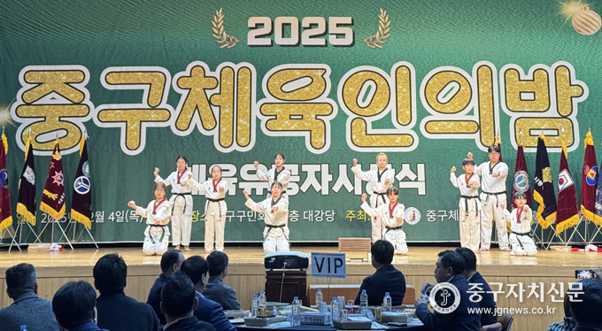 이에 앞서 식전행사에서는 2025년 한 해 동안 활동했던 생활체육 지도자들의 활동과 단위연합회 활동, 중구체육회 활동을 담은 동영상을 상영 했다. 그리고 LTA비상시범단의 태권도 시범, 위아이스팀의 K팝댄스 공연, 해달맞이클럽 공연등을 펼쳐 뜨거운 박수를 받았다.